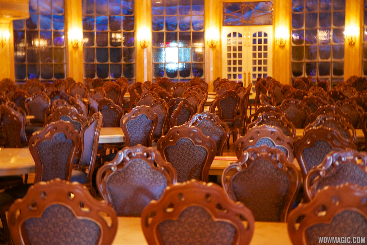 While categorized as a quick service restaurant; Have a particular room you'd like to dine in during your meal? Be our guest is located in fantasyland in magic kingdom. Be our guest restaurant's theming and ambience. The main dining room looks like the ballroom in the movie.